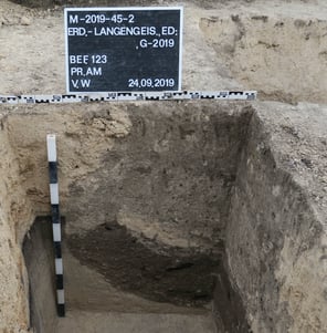Archäologische Untersuchung einer Fläche mit Siedlungsbefunden sowie zweier Gräber der Glockenbecherzeit.